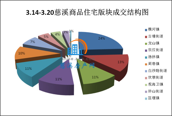 慈溪商品住宅(含别墅)各版块成交情况中,城区版块(浒山街道、古塘街道、白沙路街道、宗汉街道、坎墩街道)共成交58套,成交均价10137.18元/㎡。排名前三版块:横河镇备案36套,占上周商品住宅成交总量24%;古塘街道备案19套,占上周商品住宅成交总量的13%;龙山镇和宗汉街道各备案17套,占上周商品住宅成交总量11%。