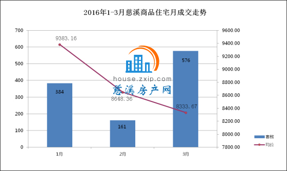 3月慈溪商品住宅共成交576套,其中高层543套,成交均价7891.35元/㎡;别墅33套,成交均价10973.85元/㎡。