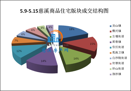 慈溪商品住宅(含别墅)各版块成交情况中,城区版块(浒山街道、古塘街道、白沙路街道、宗汉街道、坎墩街道)共成交42套,成交均价10547.68元/㎡。排名前三版块:龙山镇备案19套,占上周商品住宅成交总量18%;横河镇备案15套,占上周商品住宅成交总量的15%;古塘街道和周巷镇各备案14套,占上周商品住宅成交总量14%。