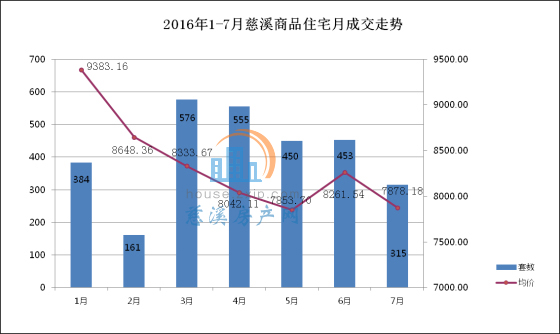 7月慈溪商品住宅共成交315套,其中高层281套,成交均价8015.77元/㎡;别墅34套,成交均价7436.25元/㎡。