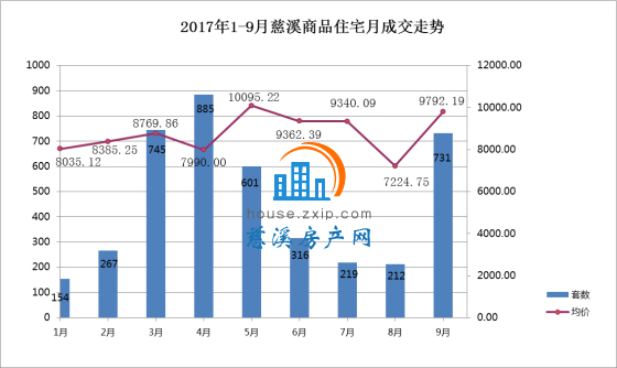9月商品住宅成交量为731套,成交均价9792.19元/㎡,成交面积100897方。