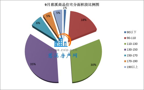 9月慈溪商品住宅按面积段成交中,130㎡-150㎡面积段产品成交257套,占总成交套数的35%,销量排名第一;110㎡-130㎡面积段产品成交220套,占总成交套数的30%,销量排名第二;90-110㎡面积段产品成交129套,占总成交套数的18%,销量排名第三。