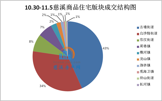 慈溪商品住宅(含别墅)各版块成交情况中,城区版块(浒山街道、古塘街道、白沙路街道、宗汉街道、坎墩街道)共成交129套,成交均价13087.85元/㎡。排名前三版块:古塘街道备案65套,占上周商品住宅成交总量的43%;白沙路街道备案51套,占上周商品住宅成交总量的34%;宗汉街道备案12套,占上周商品住宅成交总量的8%。