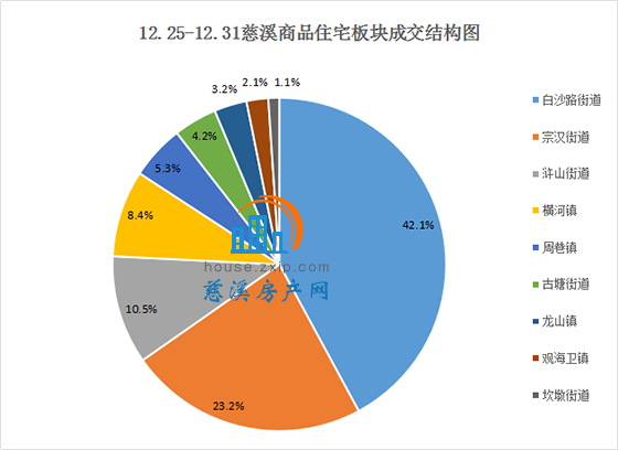 慈溪商品住宅(含别墅)各版块成交情况中,城区版块(浒山街道、古塘街道、白沙路街道、宗汉街道、坎墩街道)共成交77套,成交均价13459.47元/㎡。排名前三版块:白沙路街道备案40套,占上周商品住宅成交总量的42.1%;宗汉街道备案22套,占上周商品住宅成交总量的23.2%;浒山街道备案10套,占上周商品住宅成交总量的10.5%。