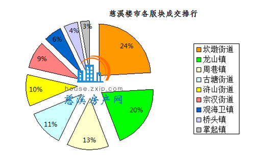 慈溪各版块各类房源成交情况中,坎墩街道17套,占24%;龙山镇14套,占20%;周巷镇9套,各占13%。