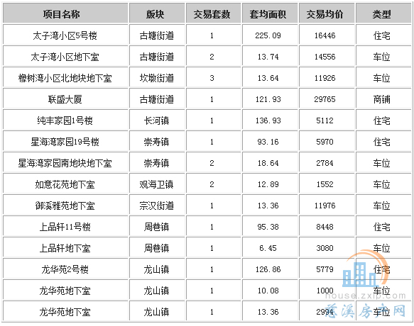 ②表格中楼盘类型“住宅/车位”表示该楼盘成交时同时包括住宅和车位两类。