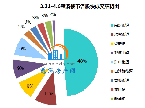 慈溪各版块各类房源成交情况中,宗汉街道32套,占48%;坎墩街道7套,占11%;崇寿镇、观海卫镇、浒山街道各成交6套,各占9%。