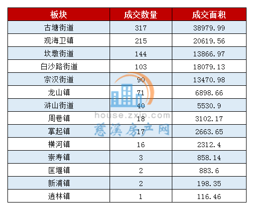从成交区域上来看,古塘街道以月成交317套居于榜首,观海卫镇以215套的成交量位居第二,坎墩街道则以144套的成交量排名第三。古塘街道成交套数最多的原因是誉林府开盘后11月份开始网签,月网签150套,其他古塘街道的楼盘也接连发力。