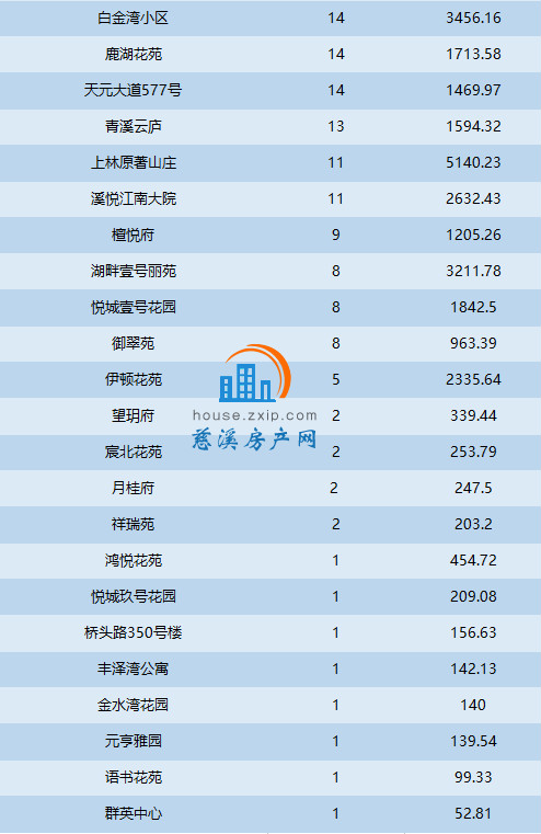 2020年5月慈溪商品房成交数据