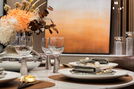 家庭应该是爱、欢乐与笑的殿堂。当奢阔空间与家庭生活重叠时,幸福的因子便氤氲开来。融创江岸臻园建筑面积约197㎡森系美宅,餐客一体化设计,筑就居家生活的奢阔空间,为居者的生活积蓄力量,奏响磅礴的生活乐章,不管家人团聚,还是待客会友,皆可轻松应对。