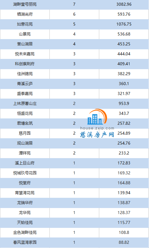 慈溪楼市5月成交备案表(以成交数量降序排列)