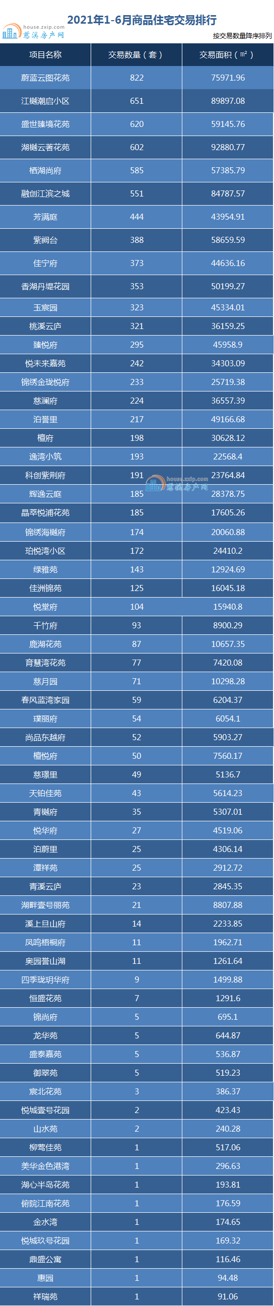 从成交排行榜上看,蔚蓝云图花苑以822套的成交量成功夺得2021上半年商品住宅交易数量排行的桂冠,其后的则是位于浒山街道的江樾潮启小区,以651套的成交量居亚军位置。最后是逍林镇的盛世臻境花苑以620套的成交量跻身前三甲。