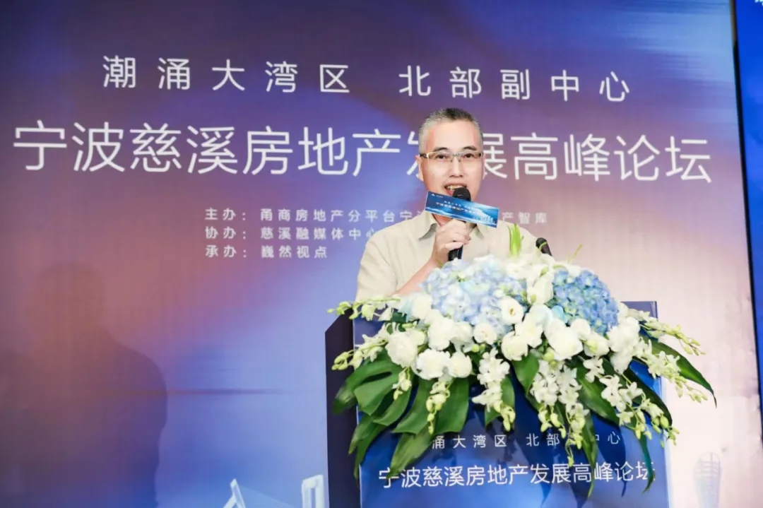 从今年首季度总投资超214亿元的重大项目集中开工,到未来5年500亿交通投资的超大手笔;从沪嘉甬高铁的可研进度加快,到“慈溪城市大脑”的正式开建……在“十四五”的开局之年,作为国家战略要地的慈溪万象更新。前湾新城,新城河—明月湖板块,金融港CBD,高教园区板块,高铁新城……近年来,随着旧城改造、交通建设、产城融合的推进,慈溪新兴板块风起云涌,展现着这座湾区时代“机遇之城”的无穷魅力。今天,以“潮涌大湾区,北部副中心”为主题的宁波慈溪房地产发展高峰论坛在慈溪国际大酒店成功举行。本次论坛由甬商房地产分平台宁波全经联地产智库主办、慈溪融媒体协办、巍然视点承办。包括慈溪当地房地产有关部门负责人,慈溪规划设计院领导、著名专家,区域品牌地产开发商代表,业内资深房产人士等在内的社会各界专家、大咖汇聚宁波慈溪,纵论北部新城前景,畅谈后调控时代楼市展趋势,聚焦这座“机遇之城”的发展蓝图。作为本次活动的主办方,甬商房地产分平台、宁波全经联地产智库会长缪百年代表主办方、承办方、协办方致欢迎辞,对出席本次高峰论坛的嘉宾、媒体朋友的到来表示热烈欢迎和衷心感谢。甬商房地产分平台、宁波全经联地产智库会长缪百年致辞在本次高峰论坛上,来自慈溪规划院的胡群立做了慈溪发展规划主题讲演,对未来慈溪城市发展做了详尽的分析,呈现了一幅宁波“北部新城”的壮丽蓝图。目前,前湾新区正在努力构建“一核、两带、六廊”的国土生态格局,布局“两核、两区、多节点”的新区城乡空间结构。