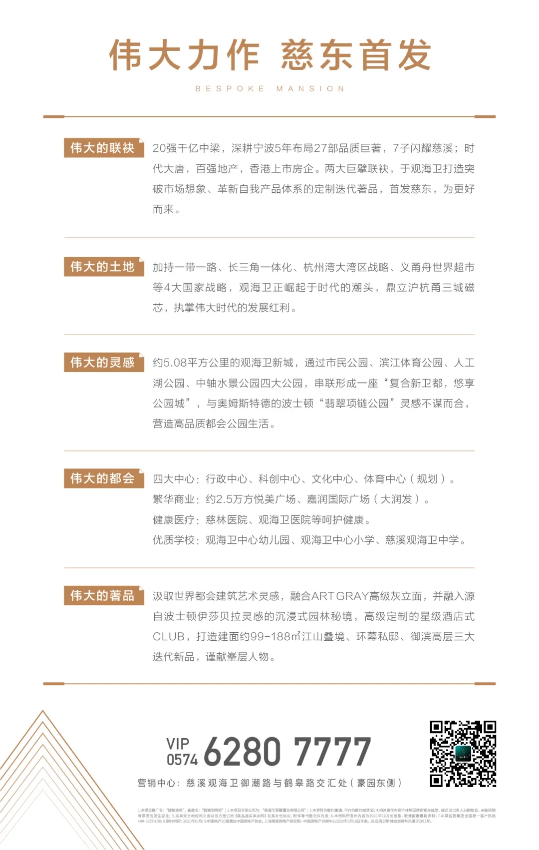 1.本项目推广名:“翡丽和鸣”,备案名:“翡丽和鸣府”;2.本项目开发公司为:“慈溪市梁腾置业有限公司”;3.本资料为要约邀请,不作为要约或承诺,最终以实际交付为准;4.相关宣传内容不排除因政府相关规划、规定及出卖人分期规划,未能控制等原因而发生变化;5.买卖双方的权利义务以双方签订的《商品房买卖合同》及其补充协议、附件等书面文件为准;6.本资料所发布内容为2021年10月的信息,敬请留意最新资料;7.中梁控股集团全国统一客户热线400-6688-108;8.制作时间:2021年10月;9.中国地产百强是由中国房地产协会,上海易居房地产研究院--中国房地产评测中心2020年3月18日评测。10.观海卫新城规划资料来源于2011年慈溪市人民政府政府信息公开网。宁慈城际铁路资料来源于《浙江省都市圈城际铁路近期建设规划》