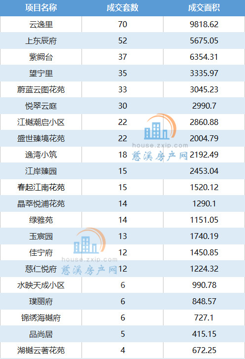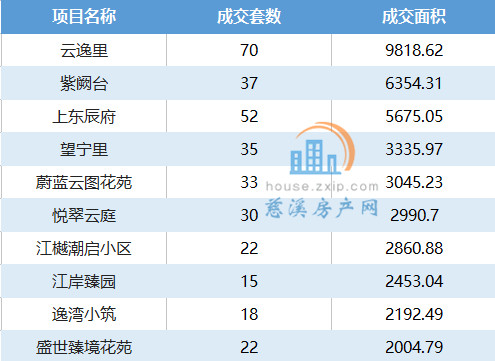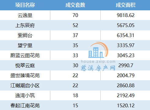 慈溪楼市10月成交备案表(以成交数量降序排列)