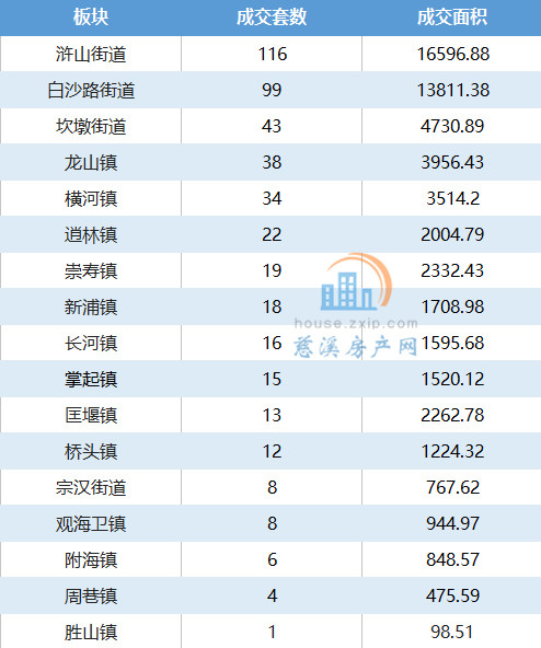 其中,浒山街道以月成交116套居于榜首,其次是白沙路街道以99套的成交量位居第二,坎墩街道以43套的成绩紧随其后。