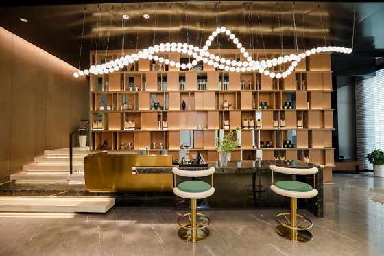 除了景观部分,翡丽和鸣在小区配套上也做了大量升级,紧挨着下沉庭院的就是一个高定会所。