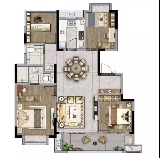 第四,这款户型居然还做到了“十面采光”。每一个房间都拥有至少一个采光面,真正做到阳光平权。