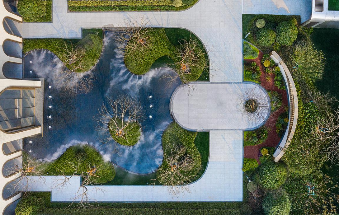“一环两轴”园林景观营造,层层递进,举目所及,是容纳心灵的幽静之地。漫步其间,绿树成荫,繁花似锦,用绿色将喧嚣、污染气体隔离在外,在繁华与静谧间找到交点!