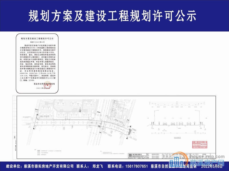慈溪市崇实房地产开发有限公司拟申请办理慈崇寿I201903-3市政道路工程的规划设计方案及建设工程规划许可,现将规划方案予以公示。公示时间自2022年5月8日起十日内,如有意见、建议,请在公示期间来电或来信到市行政服务中心规划窗口。涉及重大利害关系的,利害关系人如需申请听证,请在公示结束前向我局提出申请,听证申请人须提供姓名、住址、电话号码、身份证号码、签名及证明利害关系等事项的书面材料。若无异议,我局将依申请办理规划设计方案及建设工程规划许可证。市自然资源和规划局联系电话:63961748、63961746(上午8:00-11:30,下午1:30-4:30,节假日除外),来信请寄:慈溪市三北大街777号慈溪市行政服务中心101#窗口,邮编:315300。