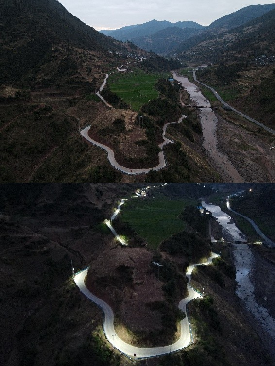 永安村地处云南省大理白族自治州云龙县诺邓镇,由于所处山区地势复杂,大部分村组各主要路段还未安装路灯,存在较大的安全隐患。旭辉捐赠公益款项,用于采购和安装30盏6米高太阳能路灯、700盏小型壁挂式太阳能路灯、5座通行桥的太阳能灯带。截至2022年1月底,永安村大路灯、小路灯以及桥梁等待已全部安装完毕。项目为永安村777户、2245位村民解决了夜晚出行难的问题。