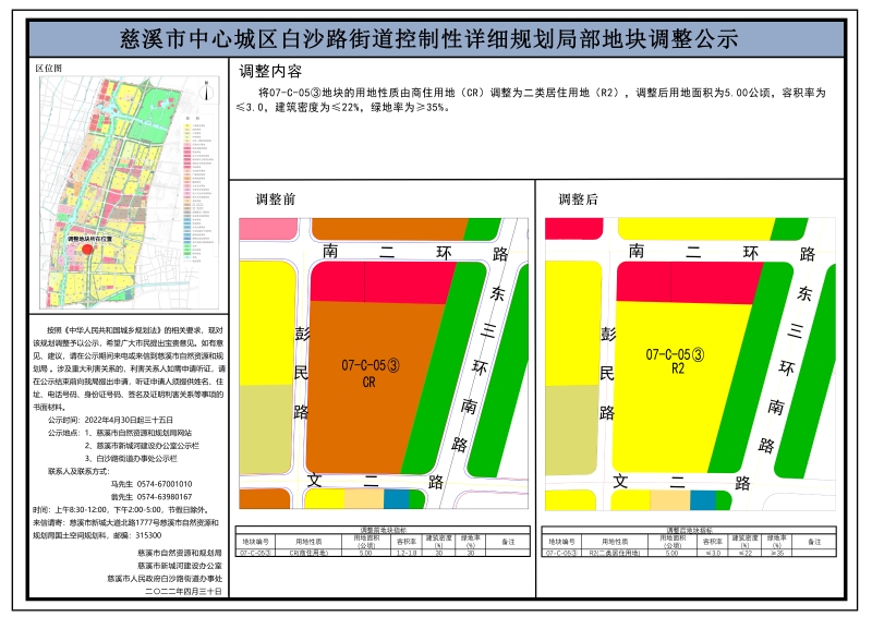 慈溪市中心城区白沙路街道控制性详细规划局部地块调整公示