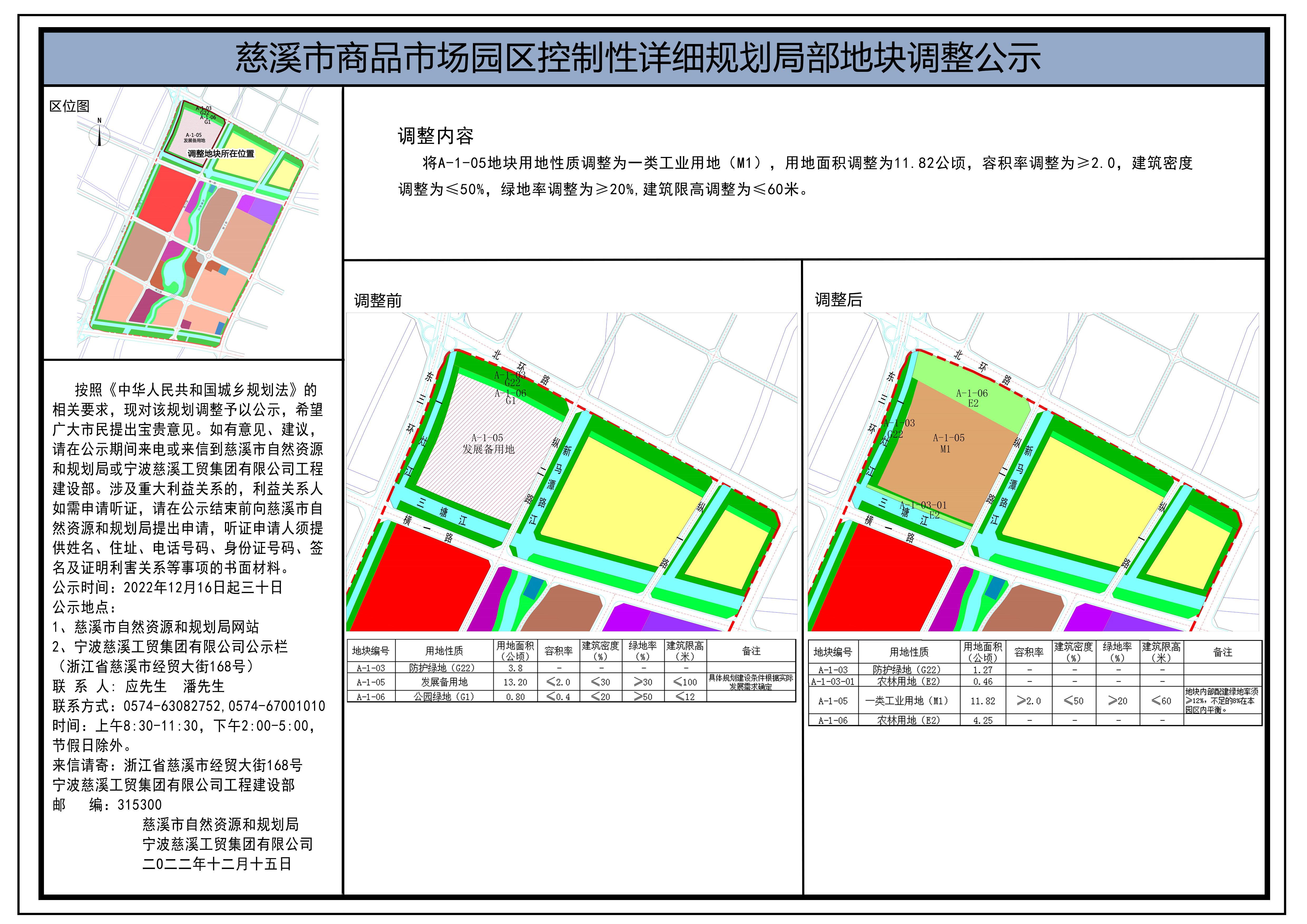 慈溪市商品市场园区控制性详细规划局部地块调整公示
