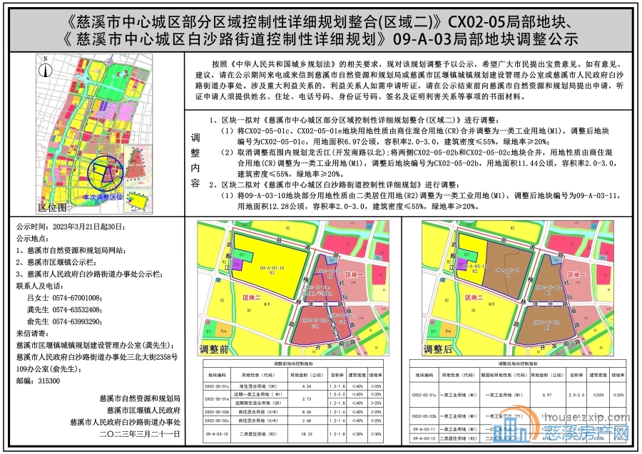 《慈溪市中心城区部分区域控制性详细规划整合(区域二)》CX02-05局部地块、《慈溪市中心城区白沙路街道控制性详细规划》09-A-03局部地块调整公示
