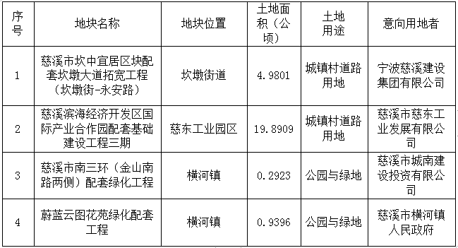 慈溪市国有建设用地使用权划拨供地公告