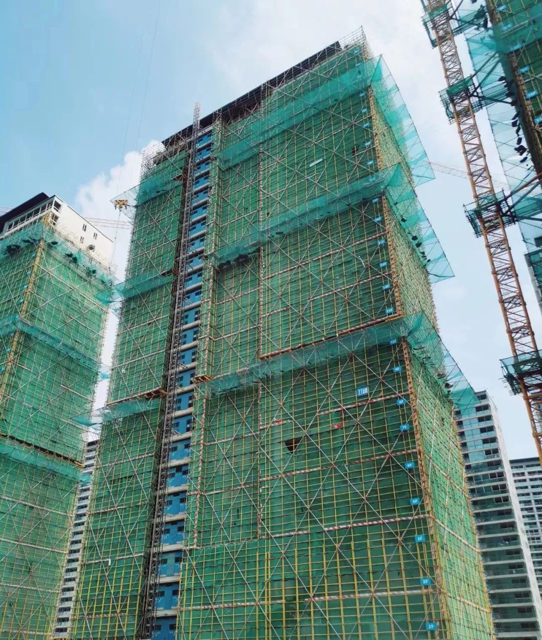 11#楼主体已封顶,砌体施工完成,二次结构施工完成,外墙粉刷施工已到后期,门窗安装已到前期,外架拆除已到前期。