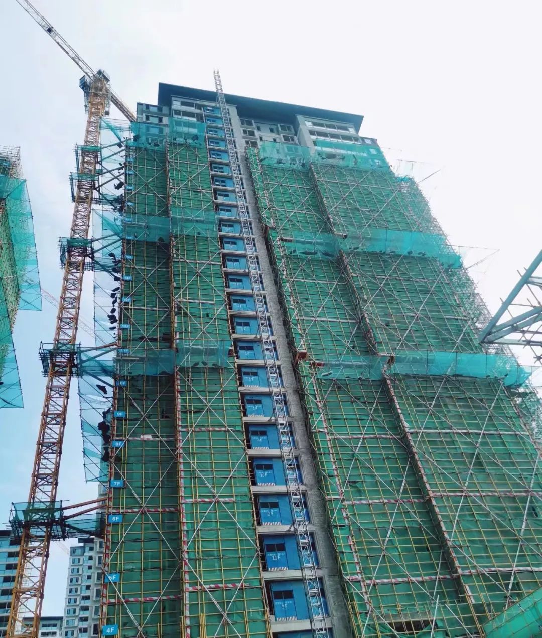 20#楼主体已封顶,砌体完成,构造柱完成,门窗安装已到后期,外墙粉刷完成,外架拆除完成。