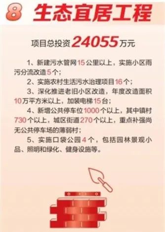 4、新增公共停车位1000个以上,其中镇村730个以上,城区街道270个以上,重点补强尚无公共停车场的薄弱村;5、实施口袋公园4个,包括园林景观小品、照明和绿化、健身设施等。