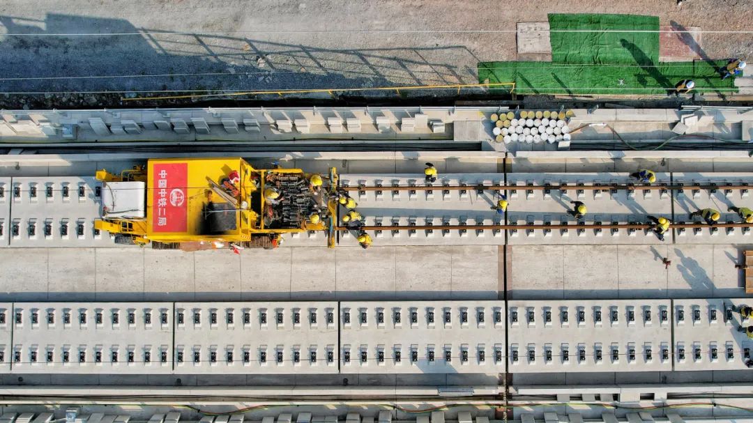 近日,一组500米长的钢轨穿过南浔沈庄漾,顺着铺轨机平稳铺设在无砟轨道床上,标志着沪苏湖铁路铺轨工作自3月2日启动后,正式由江苏吴江进入湖州市南浔区境内。