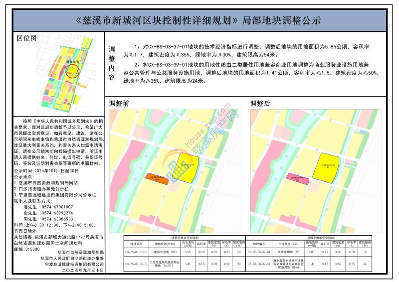 《慈溪市新城河区块控制性详细规划》局部地块调整公示