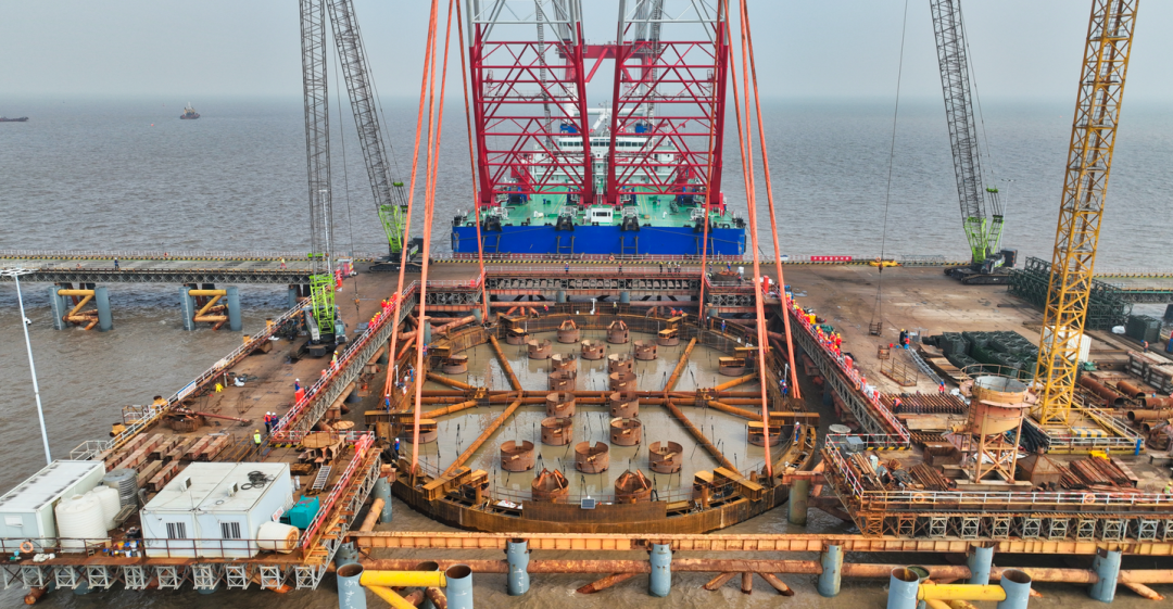 此次吊装作业的钢吊箱位于杭州湾跨海铁路大桥160号主墩,内外水头差达25米,为国内最大高度。在钢吊箱下放过程中,项目团队采用全自动化智能监控平台,动态监测、预警钢吊箱应力、姿态、高程等情况,并以三维界面进行实时场景还原,全方位展示钢吊箱姿态和受力状态,确保了整个下放过程的“万无一失”。