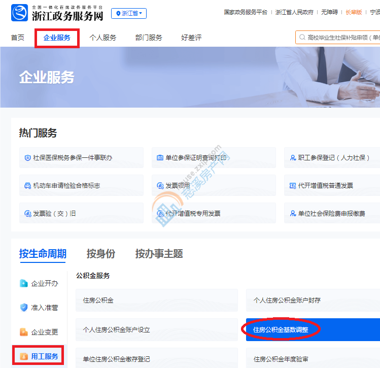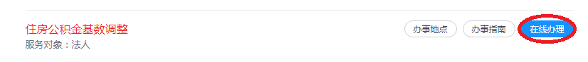 或在首页找到“企业服务”-“用工服务”-“住房公积金基数调整”,点击“在线办理”。