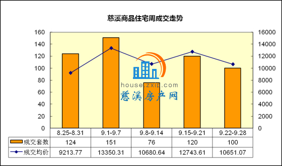 慈溪上周(9.22-9.28)成交各类房源(含住宅、公寓、商铺、写字楼和车库)共计134套,成交均价10733.62元/㎡,成交面积为17920方。环比上上周成交量下跌15.2%,成交均价下跌14.51%,成交面积下跌18.2%。即将到来的十一黄金周,成为“金九”和“银十”的纽带,同各大名胜景点一样,慈溪的各个楼盘项目也开始紧锣密鼓地进行备战,准备好好把握这个全年中非常重要的销售节点。比如绿城御园史无前例“国庆认购直减5万”,141㎡边套三房即将加推;绿城诚园10月1日-3日举办“梦幻迪士尼 美食嘉年华”活动;橡树湾小区国庆七天推出“国际马戏嘉年华”。