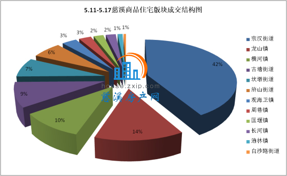 慈溪商品住宅(含别墅)各版块成交情况中,城区版块(浒山街道、古塘街道、白沙路街道、宗汉街道、坎墩街道)共成交124套,成交均价9327.77元/㎡。排名前三版块:宗汉街道备案79套,占42%;龙山镇备案26套,占14%;横河镇备案19套,占10%。