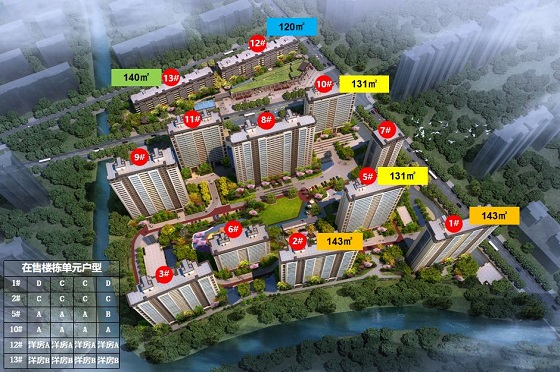 规划户型有建面约120-140㎡的洋房,建面约131-168㎡的高层及商业,共计955套,其中112套洋房,843套高层。