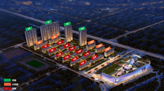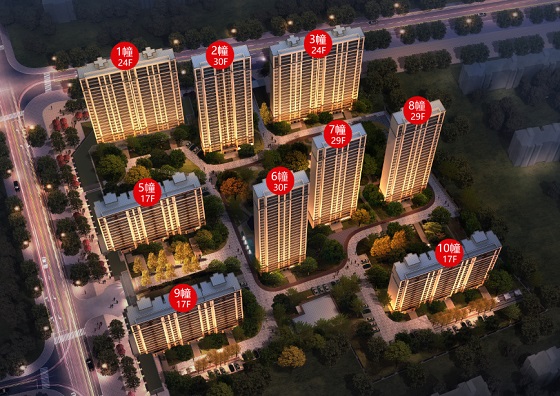 由八幢叠墅、九幢洋房组成,约6-11层,主要户型建筑面积约128~210㎡,总套数510套。